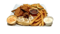 Served with house waffle, coleslaw, pickles and Nanu’s sauce