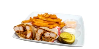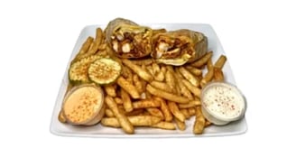 Our signature nashville chicken tender topped with coleslaw, cheese, pickles and nanu’s sauce. Served on a fresh white tortilla and with a side of our signature seasoned french fries